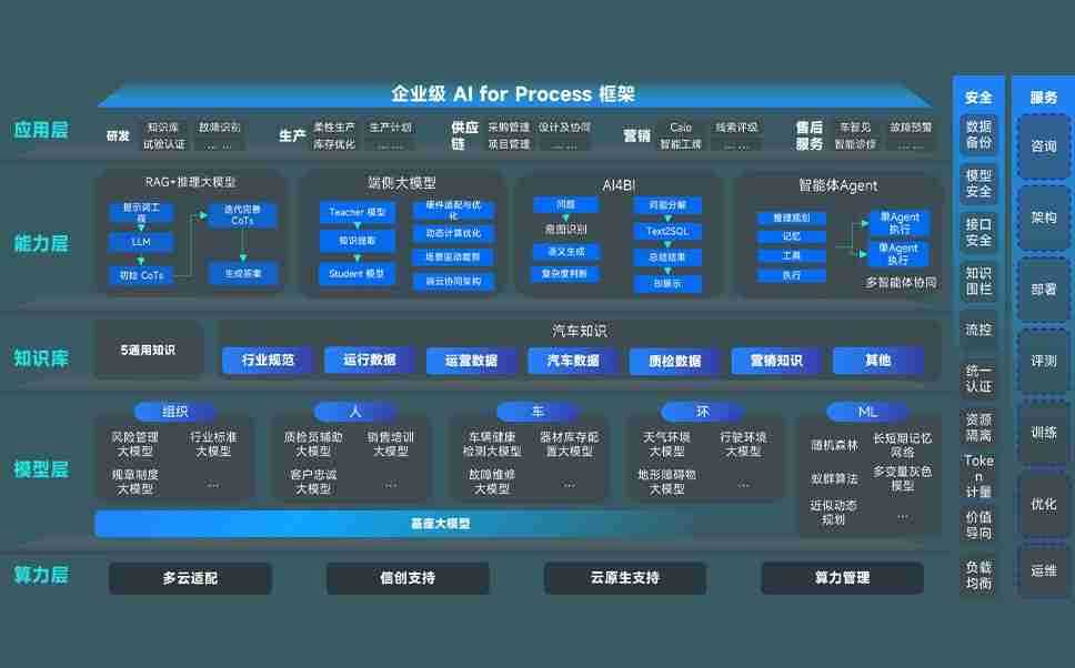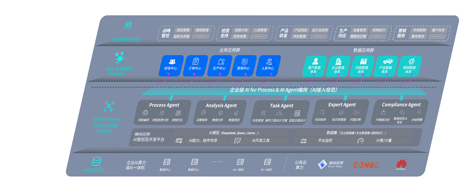 端到端的一站式AI工作空间深度融合了从企业战略规划到日常经营的全流程业务板块,,,定向解决车企内部领域多、、部门多、、、链条长、、、、场景碎片化等难题,,,支持车企快速构建以AI为核心的生产力写作体系,,,,实现任务执行与AI能力的无缝集成与交互